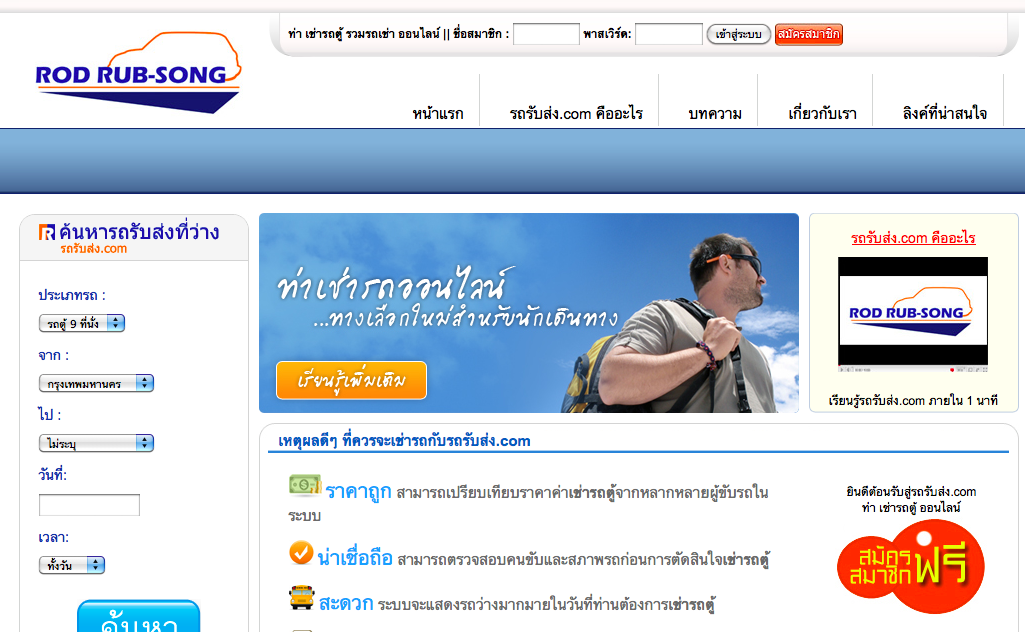 เคยหรือเปล่าเวลาที่เราจะเช่ารถพร้อมคนขับ แล้วก็ต้องเจอปัญหาเดิมๆ ที่มีมาโดยตลอด เช่น เช่ารถไปแล้วคุณภาพรถไม่ดี สกปรก คนขับรถไม่สุภาพ ขับรถไม่ดี หารถไม่ได้ในเวลาที่จำกัด ทั้งหมดนี้คุณอาจจะสมหวังมากขึ้นด้วยบริการของ Rodrubsong.com (รถรับส่ง.com)