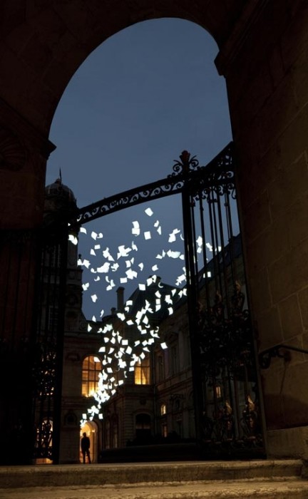 นักออกแบบชาวลอนดอนที่ชื่อว่า Paul Cocksedge เป็นเจ้าของผลงานที่สวยงามชวนฝันชิ้นนี้มันมีชื่อว่า Bourrasque งานประติมากรรมรูปกระดาษที่กำลังโบยบิน อยู่ในกระแสลม และเปล่งประกายแสงเหมือนกับฝูงหิ่งห้อย ภายใต้ฟ้ามืดมิดในบริเวณสนามหญ้าของโรงแรม Hotel de Ville ที่เป็นสถาปัตยกรรมในศตวรรษที่17 ในเมือง Lyon ในงานเทศกาลประจำปี Festival of Light…
