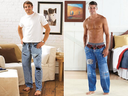 Just why on earth has this been created? They're "100% cotton lounge pants [that] have an elastic waist with drawstring and side seam pockets." Otherwise known as PJs. But they're just awful. Why do they need to have these designs printed on them? Worst of all, why does the one on the right have to have that "boxers showing" look? Yeah… those boxers are painted on! Would anyone ever hope to get laid in one of these?