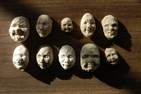 Seed Faces เป็นหน้าคนอันเล็กๆ มีหลายสี หลายขนาด ทั้งหน้าเด็กหน้าผู้ใหญ่ทั้งหญิงและชาย ทำจากกระดาษรีไซเคิล (paper pulp) ด้วยแม่พิมพ์หน้าตุ๊กตาเล็กๆ มันมีเมล็ดพืชอย่างพวกถั่ว ที่เมื่องอกต้นอ่อนแล้วสามารถทานได้ บรรจุอยู่ภายใน เพียงเอา seed face ไปแช่น้ำและเมื่อโยนมันลงบนดิน หรือที่ที่ชื้นแฉะ เพียงไม่เกิน 5วัน ก็จะมีต้นอ่อนเล็กๆงอกขึ้นมาจากหน้าเล็กๆเหล่านั้น สามารถทานต้นอ่อนได้ เป็นผลงานของ Kelsey Pike's Sustainable Papercraft Studio. มีขายในหลายขนาดบรรจุ 25 อัน 7 USD. 10อัน 3USD. ลองคิดดูจะน่าสนใจขนาดไหน ที่มีต้นไม้เล็กๆงอกออกมาจากหน้าเล็กๆ