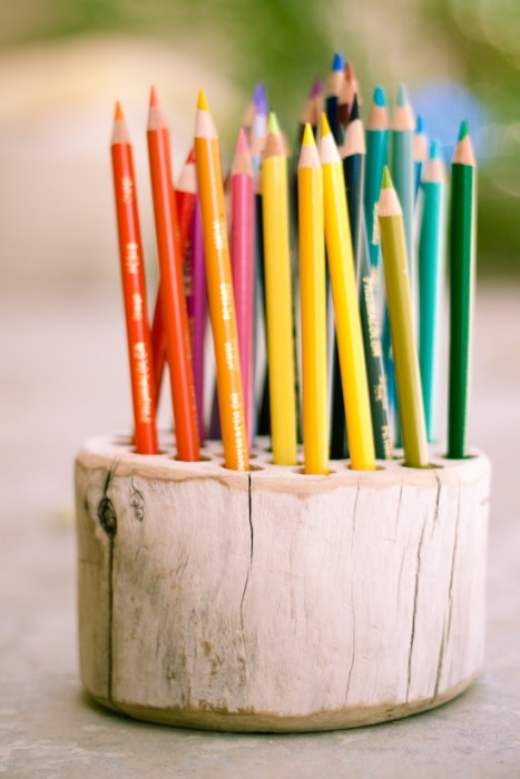 ไอเดียที่ใส่ดินสอ จากเศษไม้ ท่อนไม้ ที่เราพบเห็นได้ทั่วไป เวลาเจ้าหน้าที่ กทม มาตัดต้นไม้ริมถนน หรือในสวนสาธารณะต่างๆ เก็บเอาท่อนไม้ ลายสวยๆขนาดกำลังามมาเลื่อย หัวท้ายให้เรียบ แล้วใช้สว่าน เจาะเป็นรู เพื่อใส่ดินสอ เท่านี้ก็ได้ที่ใส่ดินสอ Go Green ดูดี วางที่ไหนในบ้าน ก็ช่วยเอาความรู้สึกดีๆในสวนกลับเข้ามาในบ้านด้วย ลองทำกันดูค่ะ ไม่อยากให้ทิ้งเศษไม้สวยๆไปเป็นขยะ เปล่าๆ เสียดาย มันต้องใช้เวลาตั้งนานกว่าจะสร้างท่อนไม้ขึ้นมาได้ขนาดนั้น