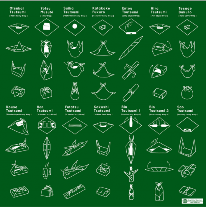 ต่อมา รัฐบาลญี่ปุ่น โดยกระทรวงทรัพยากร Ministry of the Environment of the government of Japan ได้รณรงค์ให้หันมาใช้วิธีห่อผ้าแบบญี่ปุ่น โดยจะเห็นภาพแสดงวิธีการห่อผ้าแบบญี่ปุ่นหลากหลายวิธีในเว็บไซด์ของกระทรวงเลย แบบที่เห็นด้านล่างนี้